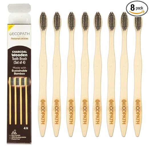 Ecopath Bamboo Wooden Toothbrush | Soft Bristles | Anti-Bacterial & Biodegradable | 100% Natural, Eco-Friendly & Sustainable | Plastic-Free Oral Care for Adults & Kids |Pack of 8